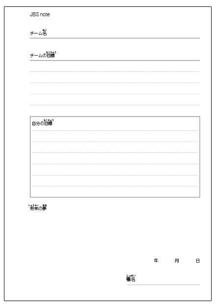 【練習の記録】 練習の目標や内容、練習して思ったことや気付いたこと、監督・コーチへの質問や相談したいことなど何でも自由に書き込むことができます。 図やイラストで記録するのも良いでしょう。 また、体の不調や悩みなど、小さなことでも構わないのでここに書いてみましょう。 指導者や保護者に口では伝えにくいことを知ってもらうのにも、このノートを利用してください。